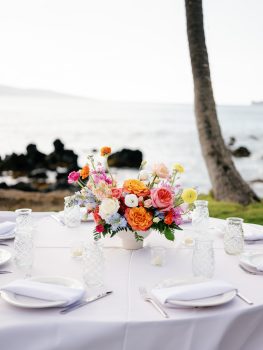 From the first consultation to the final placement of petals, our team works hand in hand with couples, planners, and venues to ensure every detail is seamless. With artistry, care, and the natural beauty of Maui as our canvas, we bring wedding visions to life in unforgettable ways.